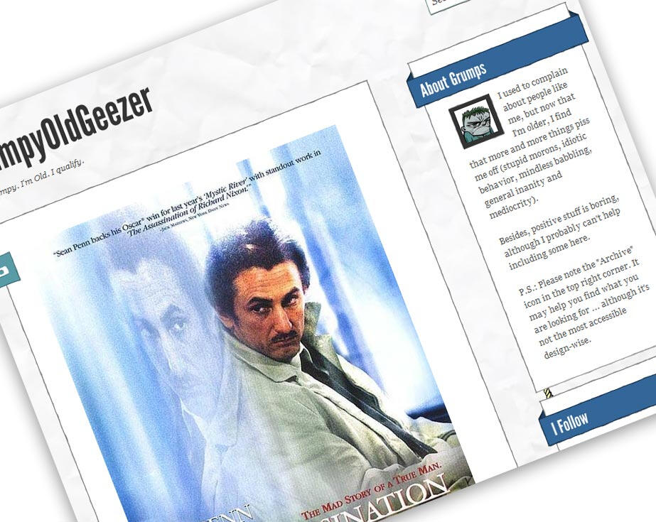 While I was learning WordPress and getting things realigned, I also kept a Tumblr blog around that I had started to keep in touch with friends.I just called it "grumpyoldgeezer" and started posting, alerting friends and acquaintances to it. Besides this single screenshot, nothing has survived, but I remember that it had accumulated several hundred short posts in a first attempt at what people had started to call "microblogging" .